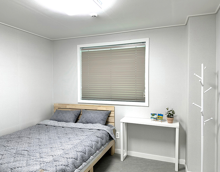 스테이 No.1은 2인 이상 4인 이하의 여행객이 이용할 수 있는 객실로, 침실에는 퀸사이즈 침대가 마련되어 있습니다.