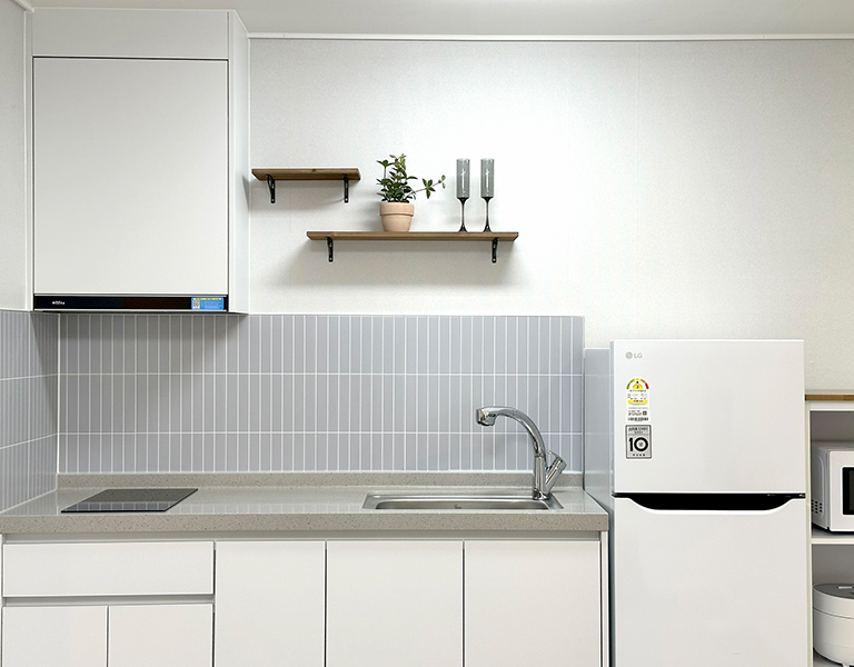 싱크대, 인덕션, 냉장고, 전자레인지, 토스터, 전기포트, 전기밥솥 등 다양한 조리 도구가 갖추어져 있어 편리하게 이용하실 수 있습니다.